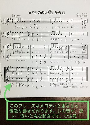 今日は、「♪もののけ姫」の二重奏をひびかせるための、下パートを“おさらい”しましょう。