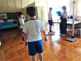 今日は2時間目に身体計測が行われました。今回は、コロナ感染予防対策として、三密に気をつけながらの測定です。体格が一回り大きくなった5年生、結果はどうだったでしょう。