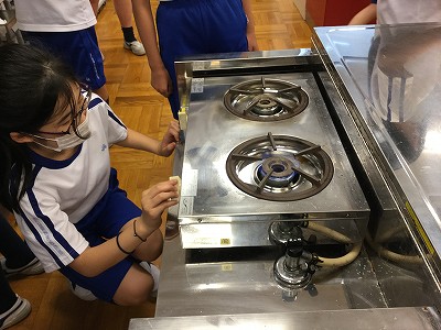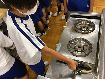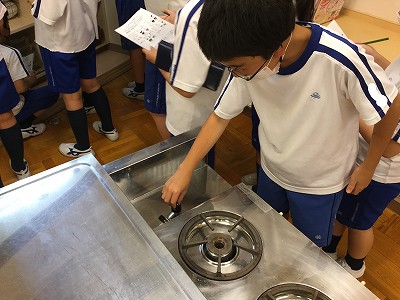 始めは教室で、教科書に紹介されている“ガスコンロ”の使い方を理解する学習を進めました。