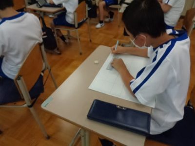 みんなにヒントをもらいながら、いざ展開図を工作用紙に書き込むのですが・・用紙には限りがあります。
