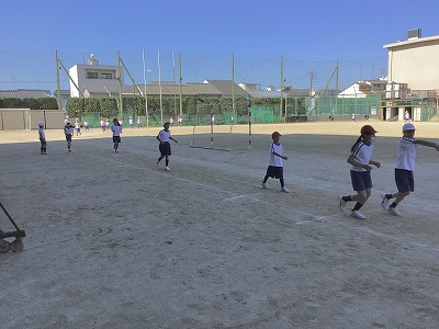 快晴の天気の下、中・高グラウンドを気持ちよく走ります。