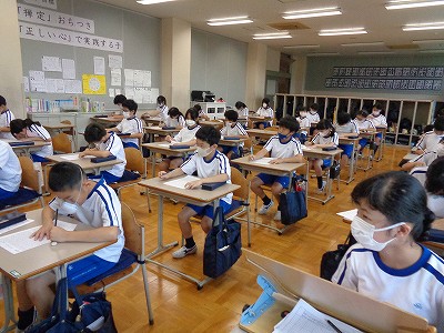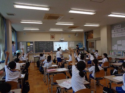 英語の時間。授業のはじめに、自分の好きな映画の発表していました。