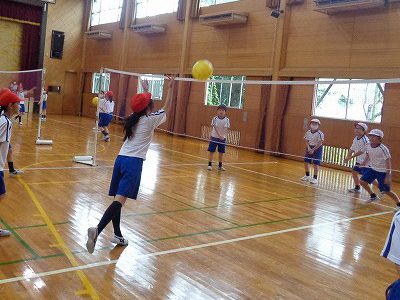 体育の時間。今日はソフトバレーボールの試合をしました。新しいチームが決まってみんな張り切っていました。
