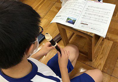 今日は、メロディ部分と低音部分の階名を確かめて、ドレミで歌う練習をしました。そのあとは、リコーダーの指使いの確認です。