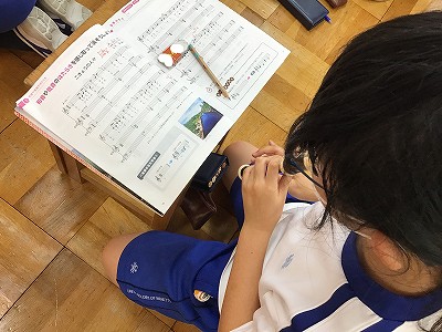 先週から「ヘ音記号」の学習を進めています。この「♪こきょうの人々」でも、低音を響かせる学習を行います。
