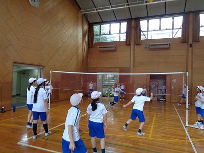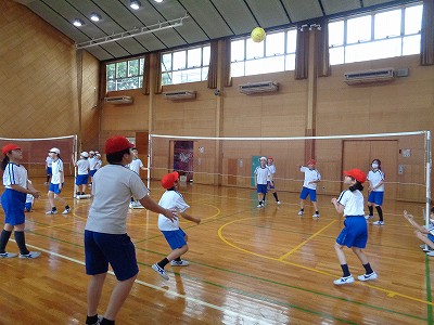 1学期最後の体育となりました。今日は先週から続けている「ソフトバレーボール」をしました。