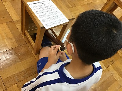 リコーダーで二重奏ができる「♪星笛」のドレミ読み(階名唱)t、指使いの練習もしました。短調の調べでさみしい感じにも伝わりますが、映画の音楽にも聞こえたそうで、階名唱をしながら、練習する姿が見られました。