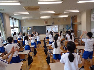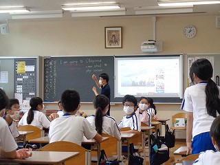 「どこに住んでいますか?」などの復習をしました。英語のダンスやパプリカなどの歌も数曲、歌いました。