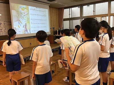 2学期音楽は「夢色シンフォニー」と「ハローシャイニングブルー」の二部合唱から始まりました。