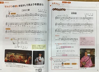 富山県の「こきりこ節」や沖縄県の「谷茶前(たんちゃめ)」は、音符に合わせて歌ってみました。方言を使っている点や、音程の上がり下がりについていけず、難しい思いをしましたが、聞き慣れ歌い慣れて、お囃子のようなリズムにのって歌える日がくることでしょう。来週も、続きます。