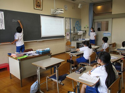 今日はみんなが作った問題を解きました。問題作成者のねらいを考えながら解いていくのが楽しそうでした。解説も頑張って言えました。