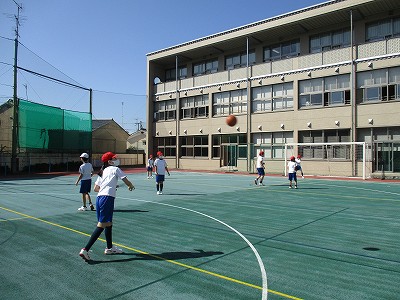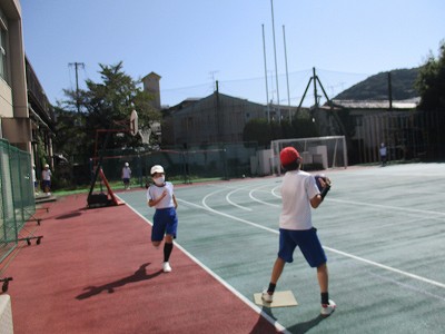 キックベースの練習をしました。まずは投げる練習から、不得意な人もいい感じで投げられるようになってきました。その後に試合をしました。守備の動きがスムーズになってきたように感じました。