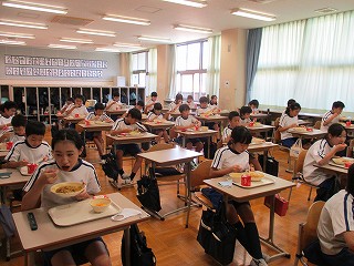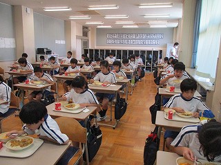 今日のメニューはカレーライスとフルーツです。10月からお増やしができるようになり給食の楽しみが増えました。しかし、今日は、お増やしはほんの少しだけでした。みんな大盛りのカレーをぱくぱく食べていました。