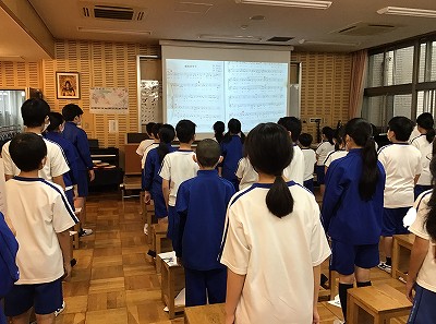 「♪君をのせて」のソプラノパ-トの練習を行った後に、二部の合唱を試しています。