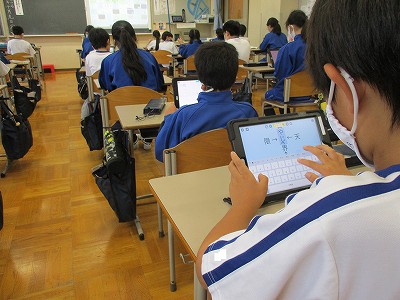 ロイロスクールランチャーのソフトを使って、漢字の穴埋めクイズを作って、みんなで挑戦しました。