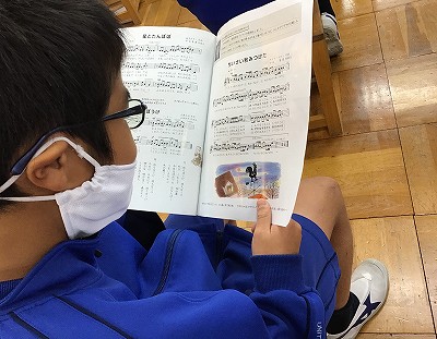 ページには、作曲家中田喜直の紹介コーナーがのっており、そこには「『めだかの学校』『雪の降るまちを』『夏の思い出』など、みんなが口ずさめる親しみや すさをもった曲を…」と、記されています。範唱のCDを聞いていた5年生の中に「さみしい感じが伝わりますね」と発言してくれた友達がいました。そして、深まる秋、静かに近づいてくる冬を感じさせる歌詞。長く歌い継ぎたい曲です。