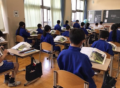 “底冷え”を感じる朝でした。5年生の音楽では“ザ・秋”を歌うことから始めました。サトウハチロー作詞、中田喜直作曲の「♪ちいさい秋みつけた」です。