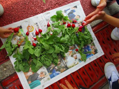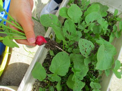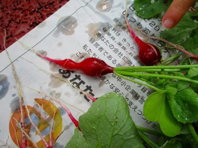 かわいい二十日大根の中には、“白いもの”や“ひょうたん型”が見つかりました。
