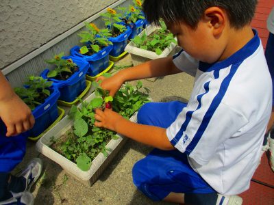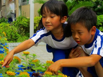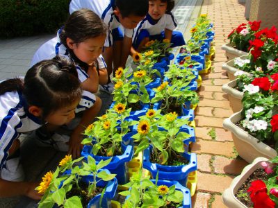 少しの間、文教キッズの玄関に花を添えさせて(!?)いただきます。