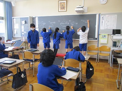 算数の時間。今日は、割合の歩合の意味と線分図の書き方の練習を中心に学習しました。