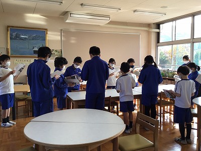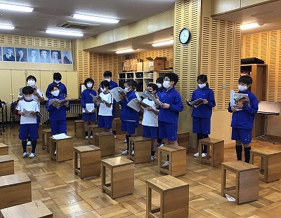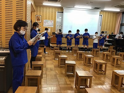 音楽室に合流した後は、それぞれの歌声を聞き合い、二部合唱の形に進みました。