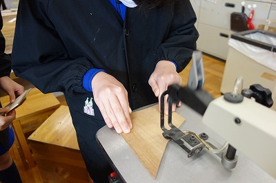 あいにく電のこの調子がよくなく、糸のこが中心となりましたが、それでも多くの児童が糸のこでの切り心地を感じ取りながら、力加減や刃の角度などを確かめていました。
