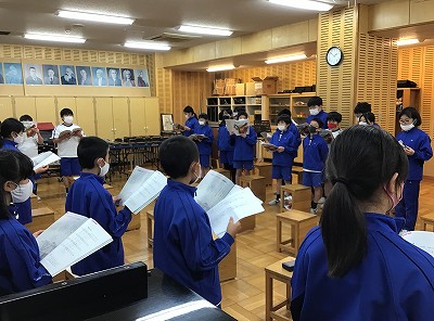 「♪冬げしき」の二部合唱から音楽の時間が始まりました。