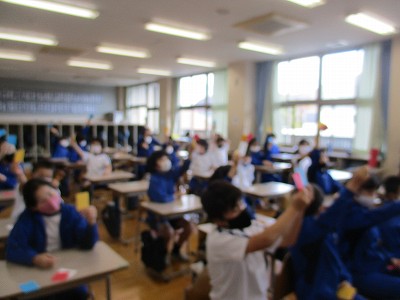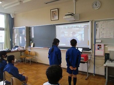 月かげ集会の様子です。今日は、コロナ禍の中、全校が体育館で行う月かげ集会ではなく各学年の教室をリモートでつないでの集会が行われました。初めての試みなので、5年生の本部役員や教室のみんなも早くからそわそわしていたようですが、集会が始まると、みんなしっかり集中して取り組めました。