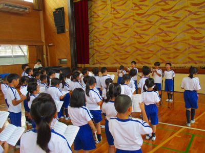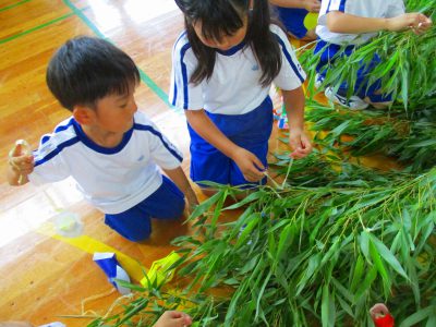 1,2校時、1年生と一緒に七夕かざり&七夕集会を開きました。