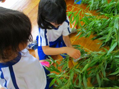 今日の笹は、小学校の玄関に、みんなの願いと共に飾られています。