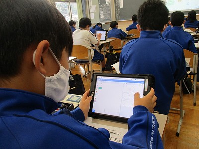 今日は、プログラミングのソフトを使って、正五角形や正六角形の図形や多角形を使った模様を描きました。