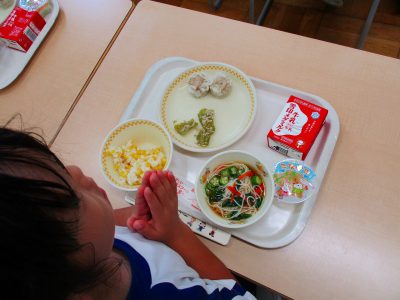 そうめんには「オクラ」がのっていて、「星形や~」と大喜び!