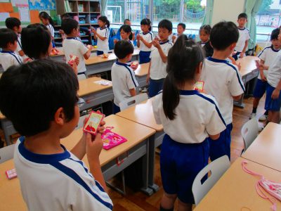 姿勢・口の開け方にも気をつけて、当面は音読と一人カルタ取りで、“仲良し”になってもらう計画です。