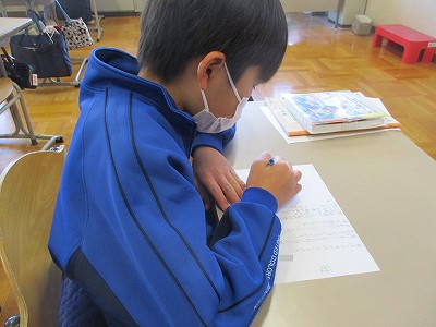 今日は、5分間走の後、サッカーのパスやシュート、ドリブルの練習をしました。少し寒かったのですが、みんな楽しんで学習できました。