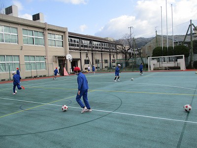 今日は5分間走の後 男女に分かれてゲーム形式のサッカーの練習をしました。