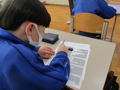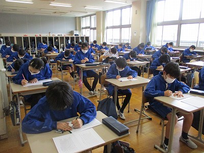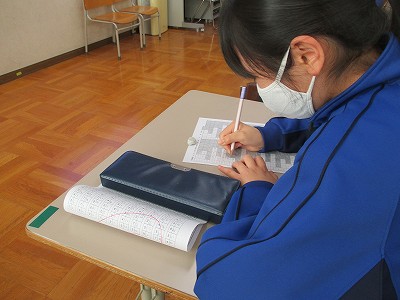 漢字大会の8回目を実施しました。「はじめ」の合図で一斉に取り組みました。70点以上が合格です。みんな100点を目指して練習を頑張ってきました。