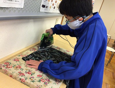 アイロンの役割がもう一つあることを学習できました。縫いやすく“折り目を付ける”という役割です。“しわをのばす”や“(のり付きの)アップリケや名札を付ける”の他に、3つめの役割があることを、体験を通して学ぶことができました。