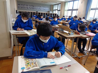 2/26金【家庭科「ランチョンマット製作をふりかえろう!」・昼休み&国語】