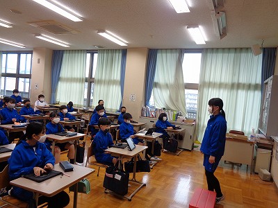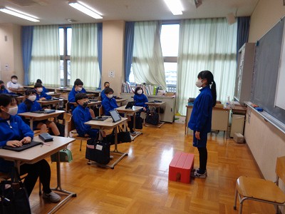 「言葉とわたしたち」の学習で、言葉と学校生活や言葉と人間関係など、言葉に関係のあることをテーマにスピーチをします。今日はその第1回目が始まりました。