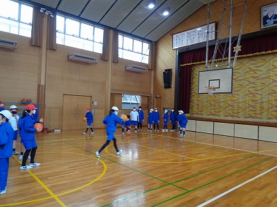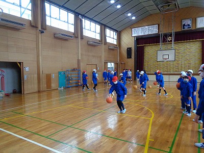 今日は、体育館でバスケットボールのパス・ドリブル・シュートの練習をしました。