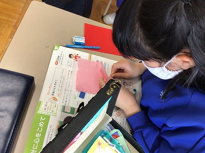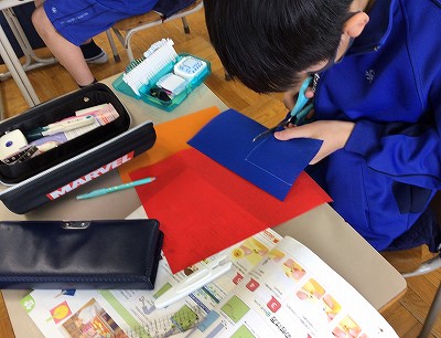 「針山・針さし」に「栞」「ミニバック」など、教科書にかわいく紹介されています。それをヒントに、もう少し続けます。