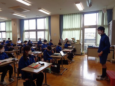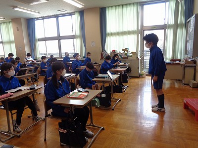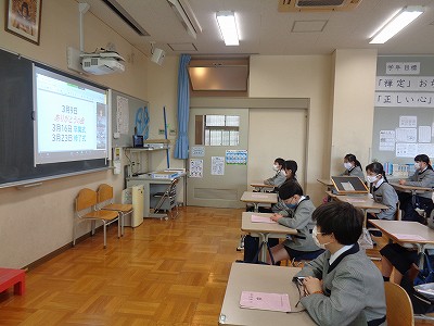 礼拝の時間、今日は漢字大会の表彰や震災関連のお話がありました。みんな真剣に聞き入っていました。