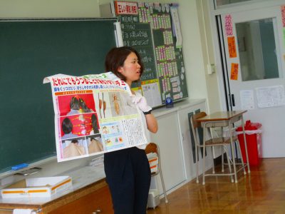 養護の中川先生から「頭ジラミ」の注意についてお話していただいた後、無事に検査は終了しました。