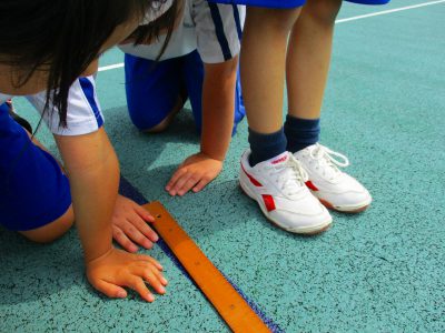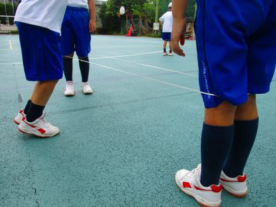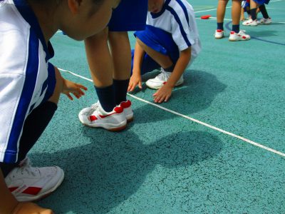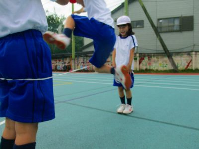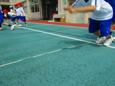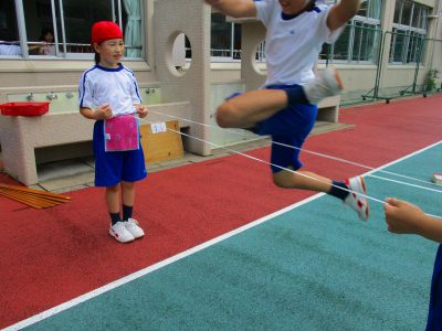ゴム跳びや幅跳びの活動で、汗をたっぷりかいています。