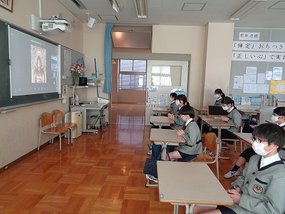 今日の礼拝は、昨日行われた卒業式の写真を見せて頂きました。来年は、自分たちの番なので、みんな真剣な眼差しで聞いていました。