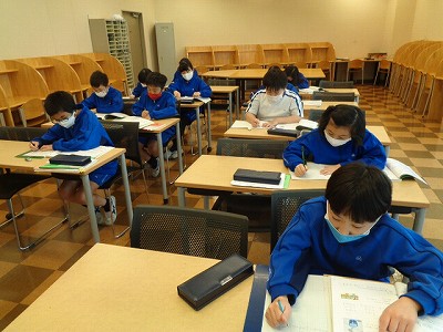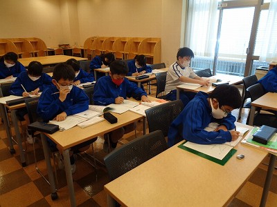 学習室では、教科書の「分数のかけ算」の練習問題に取り組みました。