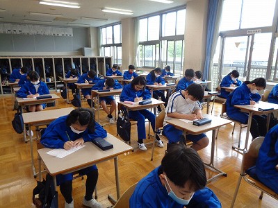 5時間目の前半は、避難訓練でした。「命を守る」大切な学習であることが分かって、「真剣」に臨むことがポイントです。6年生は、新校舎の階段を使って運動場に避難しました。