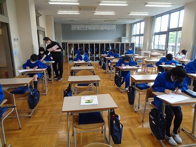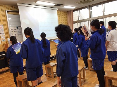 CDのメロディに合わせて、アルトのパートを歌う練習を取り入れて、最後は、全体を通して歌唱しました。音の重なりを感じて、気持ちよく歌うことを大切にしていきたいと考えます。2番の歌詞まで覚えて歌えるように、練習を続けます。