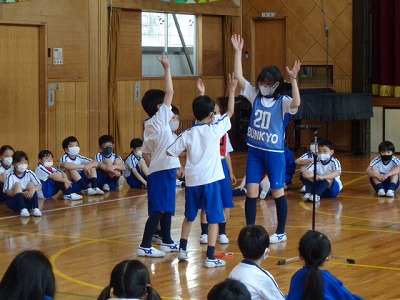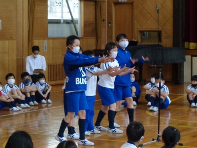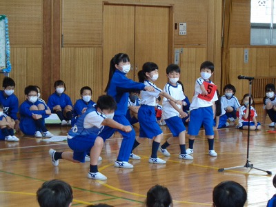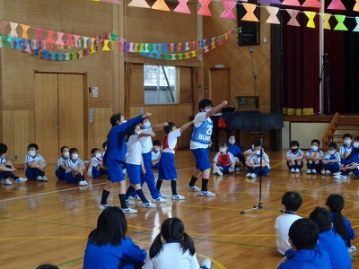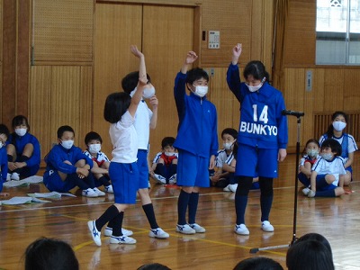 いよいよ本番。練習から少し緊張気味で声がうわずっていた6年生でしたが、失敗をおそれず思い切って、オリジナルのパフォーマンスを披露することができました。