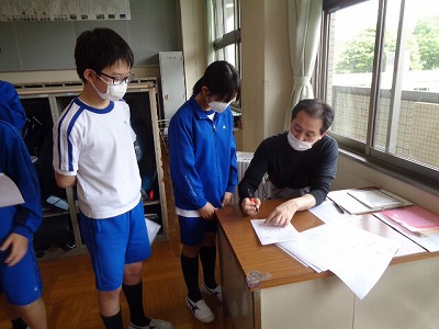 解けない問題が多いのか、玉井先生の説明を受ける列が長くなっています。